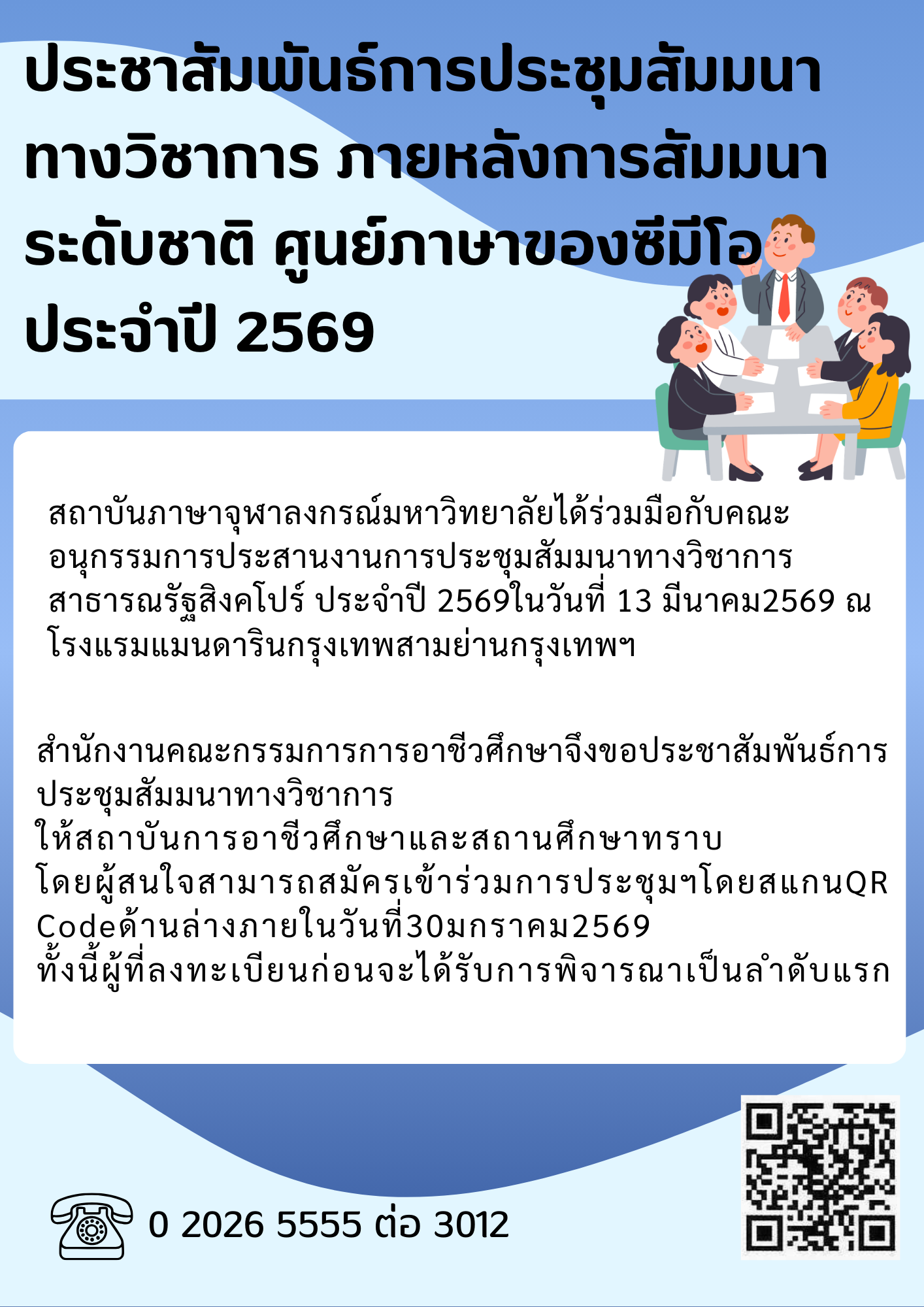 การประชุมสัมมนาทางวิชาการ ภายหลังการสัมมนาระดับชาติ ศูนย์ภาษาของซีมีโอ ประจำปี 2569