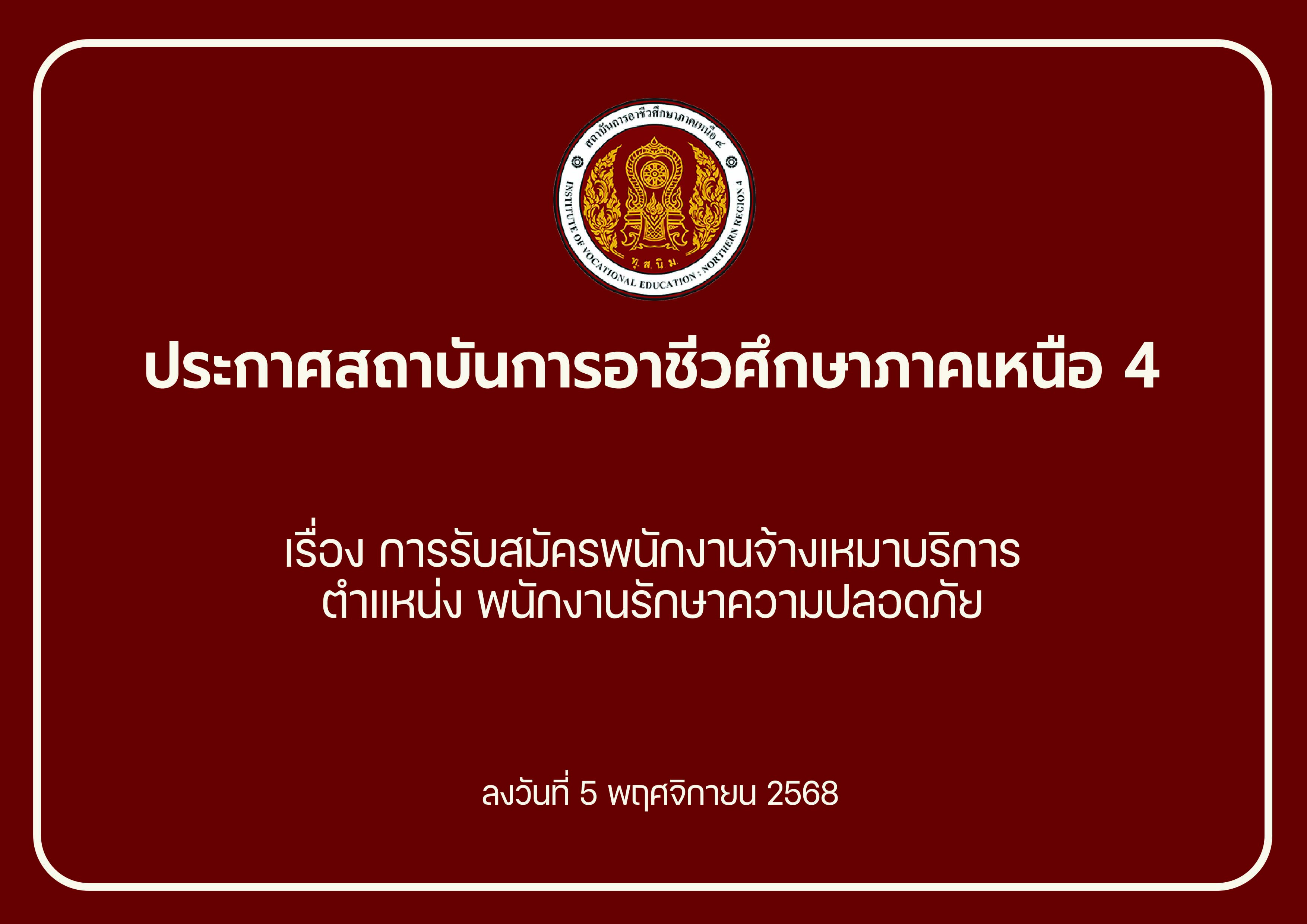 สำหรับผู้ที่มีความประสงค์จะสมัครเข้ารับเลือกสรรและจัดจ้างเป็นพนักงานรักษาความปลอดภัย สามารถนำส่งใบสมัครด้วยตนเองได้ที่สถาบันการอาชีวศึกษาภาคเหนือ 4